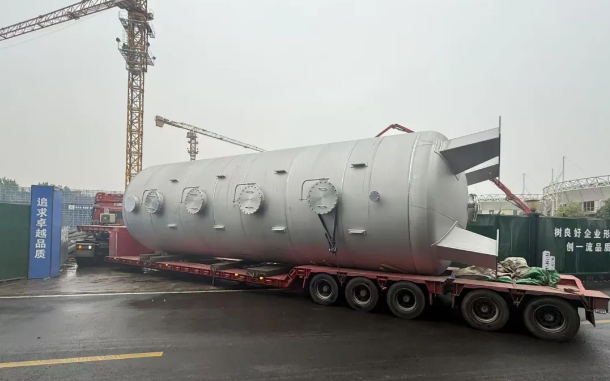 4月21日,江滨水处理公司污水深度处理二期工程(第二阶段)核心工艺设备——三相催化氧化系统反应器顺利运抵项目施工现场并完成吊装,标志着该工程进入设备安装阶段。