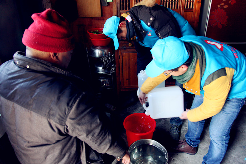 上午10点,在夏履镇联华村,气温还是非常低,只有零下4度,极寒天气给村民的用水带来了一定的影响。今年79岁的孤寡老人李大爷半边残疾,行动不便,这几天停水,他只能拜托村民帮他去挑水,正在发愁之际,送水的志愿者已经来到他家,当志愿者将水倒进村民们空空的水桶中时,老人们都感激万分,这雪中送水的情谊让他们在冰冻天感受到了温暖。
